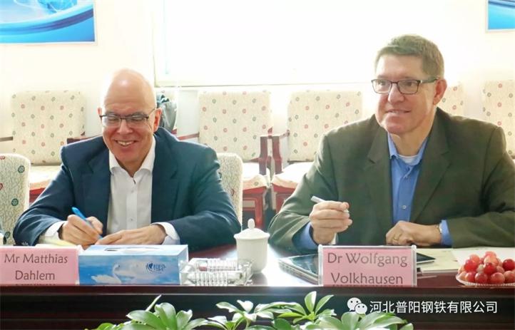最后,Mr.Matthias.Dahlem和Dr.Wolfgang.Volkhausen以及劉濤博士一行在三樓會議室和張總等人就環(huán)保治理問題進行了深入細致地探討,并希望今后雙方能夠相互合作,整合雙方優(yōu)勢深入開展環(huán)保治理工作,共同促進國內(nèi)綠色鋼鐵產(chǎn)業(yè)的發(fā)展。 |