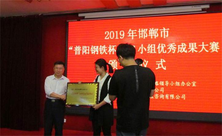 9月25日下午,邯鄲市首屆“普陽鋼鐵杯”QC小組優秀成果大賽頒獎儀式在復興區邯鋼賓館隆重舉行。河北省市場監管局質量發展局局長國建峰、調研員蘇少輝,邯鄲市復興區區委書記潘利軍、副區長盧虎,市場監管局局長申陸峰、副局長李靜波出席了頒獎儀式,河北普陽鋼鐵有限公司(以下簡稱“普陽鋼鐵”)技術總監楊云清、質管部長盧鳳飛參加了儀式。