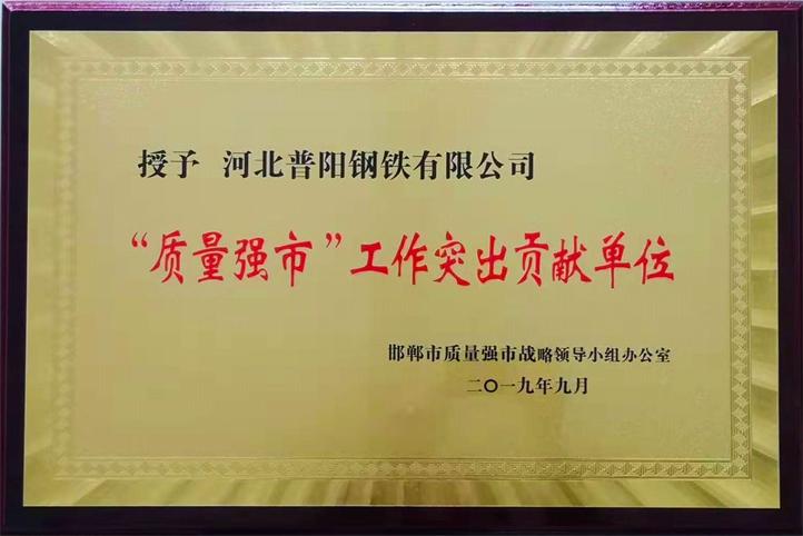 普陽鋼鐵自建廠以來,始終高度重視質量管理工作,專注于為客戶提供高質量、高附加值的精品鋼材,全面推行“窄幅工藝”和精益管理,通過“走出去,引進來”“嚴管細管”等方法,持續不斷地優化工藝技術,穩定提升產品質量,憑借卓越的質量管理,先后榮獲“武安市長質量獎”“河北省政府質量獎提名獎”“邯鄲市長質量獎”和“全國質量獎鼓勵獎”等重量級榮譽,有5項產品榮獲國家冶金產品實物質量最高獎項“金杯獎”。 |