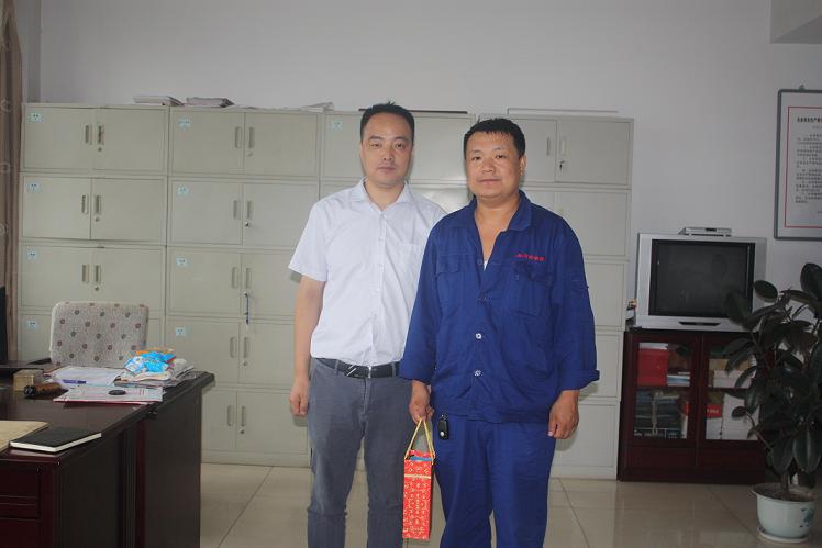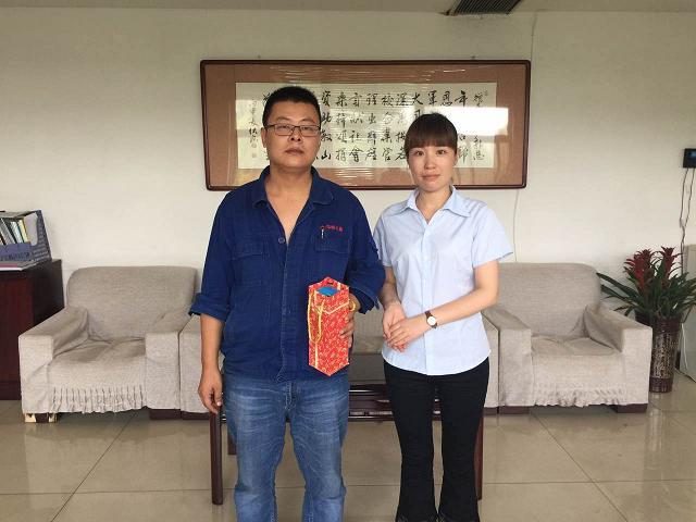 牛現(xiàn)利(“最美鋼鐵人”評選活動優(yōu)秀獎)在領(lǐng)獎時的照片