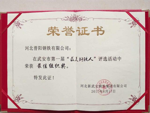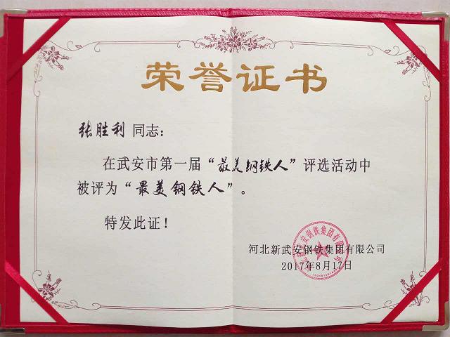 8月16日,武安市首屆“最美鋼鐵人”評選結(jié)果揩曉:我公司焦化廠廠長張勝利、普陽煉鋼廠廠長石劍飛、中普煉鐵廠廠長申建軍,榮獲此次活動的前三名;申習(xí)民、王旗杰、牛現(xiàn)利榮獲“優(yōu)秀獎”。同時,我公司還榮獲“最佳組織獎”。