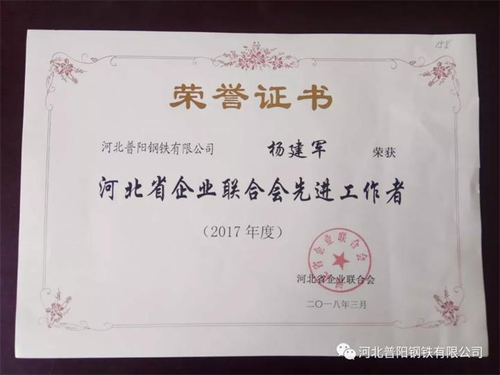 近日,河北省企業(yè)聯(lián)合會(huì)表彰全省“明星企業(yè)”大會(huì)在石家莊市中山賓館召開(kāi),我公司副經(jīng)理王瑞華應(yīng)邀出席了會(huì)議。會(huì)上,我公司被評(píng)為“河北省明星企業(yè)”,是為數(shù)不多的鋼鐵企業(yè)之一,彰顯了我公司的實(shí)力和競(jìng)爭(zhēng)力。與此同時(shí),我公司總經(jīng)理石躍強(qiáng)被評(píng)為“河北省優(yōu)秀企業(yè)家”,辦公室主任楊建軍被評(píng)為“河北省企業(yè)聯(lián)合會(huì)先進(jìn)工作者”。