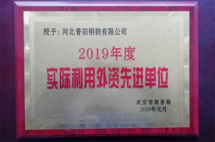 日前,河北普陽鋼鐵集團(tuán)收到市商務(wù)局頒發(fā)的榮譽(yù)牌匾,2019年面對嚴(yán)峻的外貿(mào)形勢,普陽鋼鐵集團(tuán)深入踐行“國內(nèi)國外兩個市場都要占領(lǐng)”的經(jīng)營戰(zhàn)略,努力開展出口貿(mào)易,在推動我市引進(jìn)外資、加強(qiáng)對外貿(mào)易方面作出了突出 成績,鑒于此,河北普陽鋼鐵有限公司、中普(邯鄲)鋼鐵有限公司被市商務(wù)局授予“2019年度實際利用外資先進(jìn)單位”榮譽(yù)稱號。