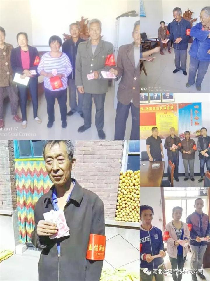 國慶節當天,陽邑鎮在柏林前街村委會舉行精準脫貧公益性崗位第一個月工資發放儀式。陽邑鎮黨委書記王增平、鎮長周現偉、民政主管郭奮強、普陽鋼鐵“精準扶貧辦”主任楊建軍、24個村支部書記、公益性崗位人員代表共計50余人參加了發放儀式。