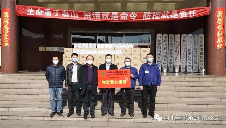 3月3日,江泰保險經紀股份有限公司石家莊分公司張彥平經理一行代表江泰經紀和保險向集團贈送防疫用品(84消毒液70箱,醫用酒精24壺,口罩1000個),支持和幫助集團做好疫情防控工作,安監部申利波、保險科李美洲熱情接待了張經理一行,并對江泰的友好贈送表示感謝。