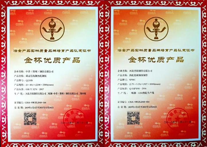 日前,中國鋼鐵工業協會公布2018年冶金產品實物質量“金杯優質產品”名單,普陽鋼鐵集團申報的碳素結構鋼熱軋鋼板(Q235B)和熱軋低碳素薄帶鋼(SPHC)榜上有名,榮獲冶金產品實物質量“金杯獎”。