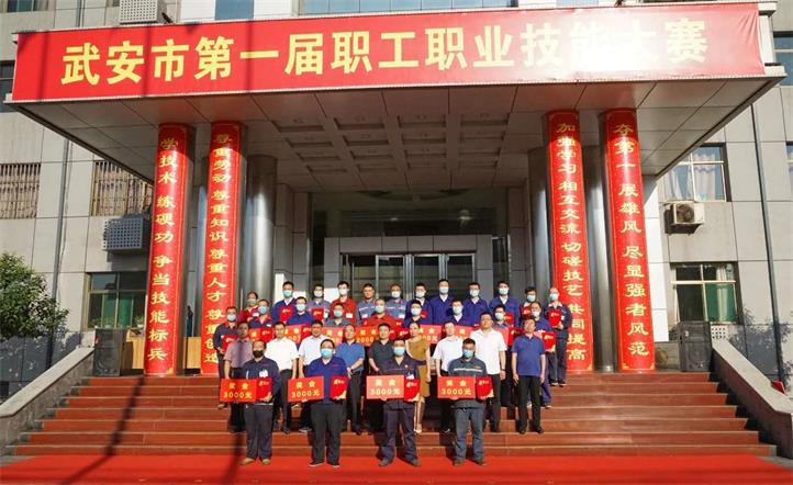 7月25日下午,武安市第一屆職工職業技能大賽閉幕式在新金鋼鐵舉行,武安市人大黨組成員、二級調研員,總工會主席張增祥,人力資源和社會保障局局長武秀其,總工會黨組書記、常務副主席高宏偉及各企業領導出席了儀式,普陽鋼鐵集團副總經理郭龍鑫應邀出席為獲獎選手頒獎。閉幕式由高宏偉常務副主席主持。