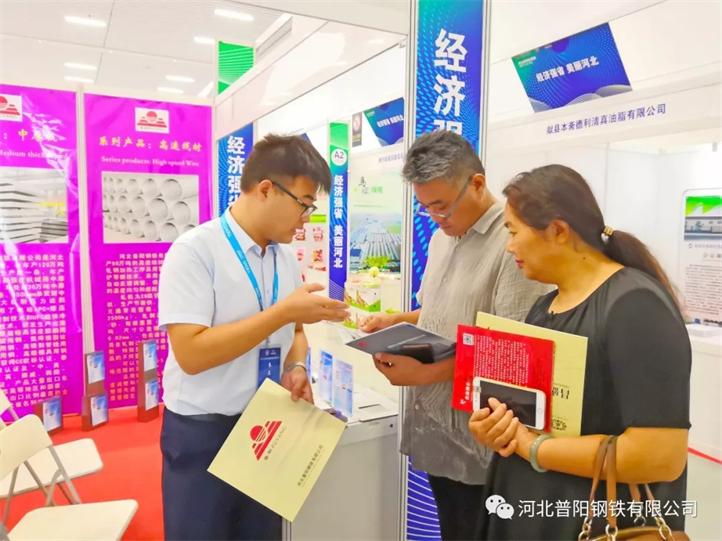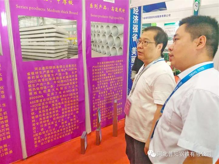 武安市政府領導梁考績和工商局局長郭海濤認真觀看了公司展位各類產品的介紹,對此次參展的產品進行了詳細詢問,聽完工作人員的匯報后,武安市政府領導梁考績強調:此次參展的鋼鐵企業,河北省內只津西和普陽兩家,武安市唯普陽一家,工作人員一定要做好產品宣傳工作,增強區域行業交流,增強和擴大武安鋼鐵品牌的區域影響力。