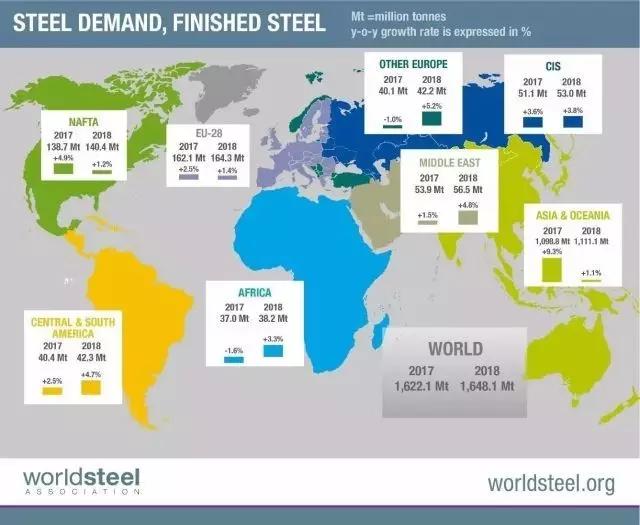 世界鋼鐵協會市場研究委員會主席T.V.Narendran在談及預測結果時指出:“今年,全球鋼鐵市場持續向好,周期性回升力度持續加強使得發達經濟體和發展中經濟體的鋼鐵市場表現好于預期,而中東北非地區和土耳其的鋼鐵市場依舊較為疲軟。世界鋼鐵協會指出,2018年,中國鋼鐵需求增長勢頭趨緩,經濟結構調整繼續深化及出臺更為嚴厲的環保措施將遏制對鋼鐵的需求,據預測,2018年中國的鋼鐵需求同比難以出現增長。