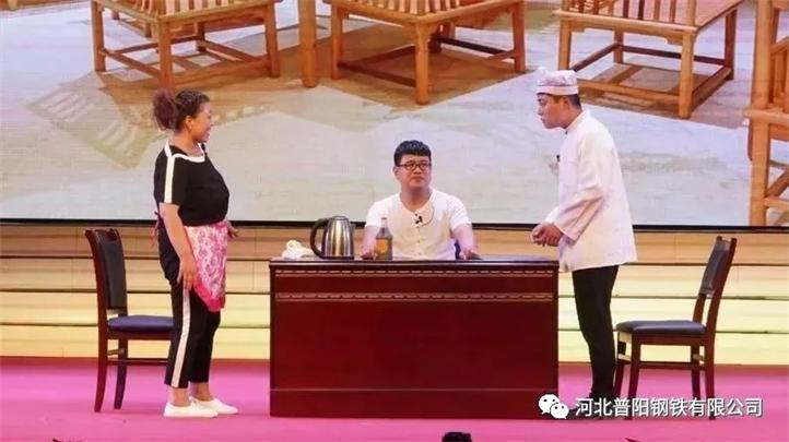 整場(chǎng)頒獎(jiǎng)晚會(huì)由大合唱《普陽之歌》《勞動(dòng)托起中國(guó)夢(mèng)》拉開帷幕,在吉祥喜慶的舞蹈《中華全家福》中結(jié)束。現(xiàn)場(chǎng)高潮迭起,尤其是中普煉鋼的情景表演《共同來環(huán)保》、小品《祝壽》、舞蹈《海草海草》,中普煉鐵的音樂快板《勞動(dòng)最光榮》、情景歌舞《跪羊圖》以及普陽煉鋼的《眾人劃將開大船》贏得現(xiàn)場(chǎng)觀眾陣陣掌聲和高度稱贊。