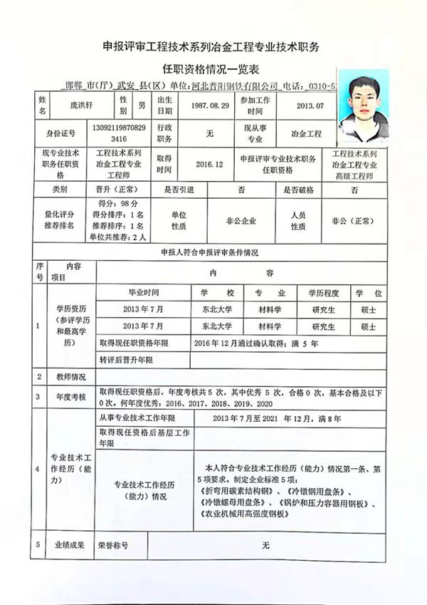 2、龐洪軒同志擬申報(bào)高級(jí)工程師職稱;