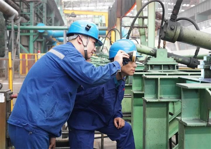 曾經(jīng)有一段時間,熱卷車間除鱗箱體頂部總是被高壓水擊穿。一開始郭超和工友們只是哪兒破就補(bǔ)哪兒,可剛補(bǔ)好,沒兩天就又被擊穿。郭超琢磨著可能是修補(bǔ)材料不行,就換成不銹鋼。然而,更換修補(bǔ)材料之后,效果依舊不好。不服輸?shù)墓愣自诔[箱體旁邊,觀察過鋼情況,慢慢地,他發(fā)現(xiàn),由于噴淋帶(除鱗集管)的寬度是一定的,而鋼坯的寬度是變動的,這就導(dǎo)致在高壓水除鱗時,超出鋼坯寬度的那部分高壓水就直接打在了除鱗箱體頂部,正因?yàn)檫@樣,擊穿的位置總是兩側(cè)更多一些。了解到這一情況后,郭超和工友們將厚一些的鋼板焊接在除鱗箱體內(nèi)部,并將兩側(cè)加厚。由外補(bǔ)改成內(nèi)擋,一個困擾大家很長時間的問題,通過用心觀察工藝,得到了有效的解決。郭超說,這件事兒對他的觸動很大,讓他認(rèn)識到,學(xué)習(xí)提高總會經(jīng)歷“從外到內(nèi)、由表及里”的過程,中間會走一些彎路,但只要用心總結(jié),所走的每一步就都有用。關(guān)鍵是,要盯住問題不放,不能一直停留在“頭痛醫(yī)頭、腳痛醫(yī)腳”的程度。