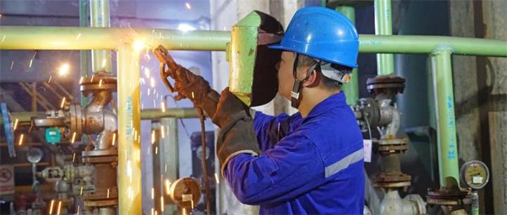 郭超笑了笑說道:“也可以這么說。事實(shí)上,對于我們普陽維修工來說,電焊只是我們必備技能之一。我們常說‘焊割不分家’,很多時候,我們在處理故障時,需要獨(dú)立完成切割與焊接。只不過在這兩種技能中,我在焊接方面比切割稍微好一點(diǎn)。我上學(xué)時讀的是職業(yè)中專,學(xué)的專業(yè)就是電氣焊。自2006年進(jìn)廠以來,14年里一直干維修,長期的工作實(shí)踐對我電焊技能的提高有很大幫助。像‘心平手穩(wěn)落點(diǎn)準(zhǔn),立平仰焊一次成’這些焊工技術(shù)要領(lǐng),沒有工友的幫襯、沒有領(lǐng)導(dǎo)的栽培、沒有時間的浸泡與打磨,是練不出來的。”
